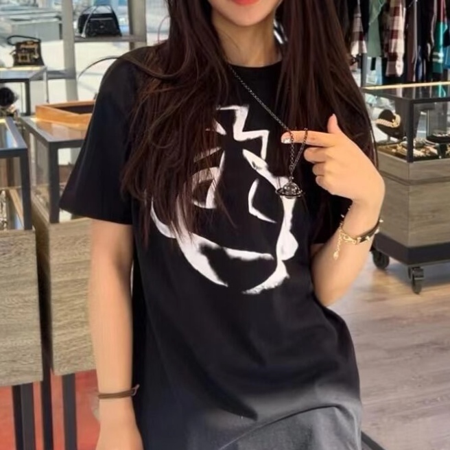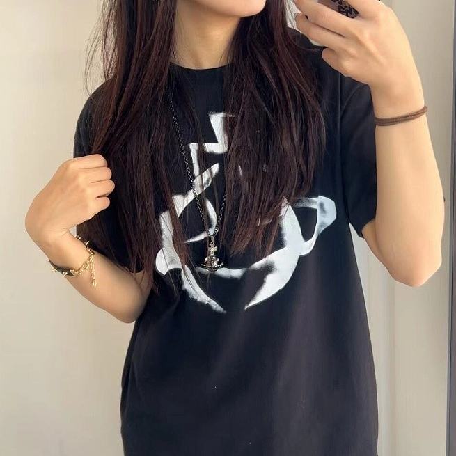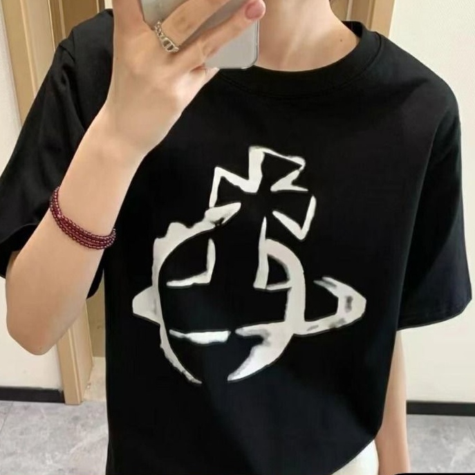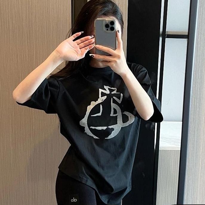 西太后新款土星星球印花圆领短袖T恤 男女同款 黑色