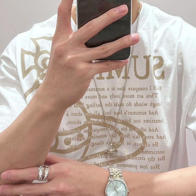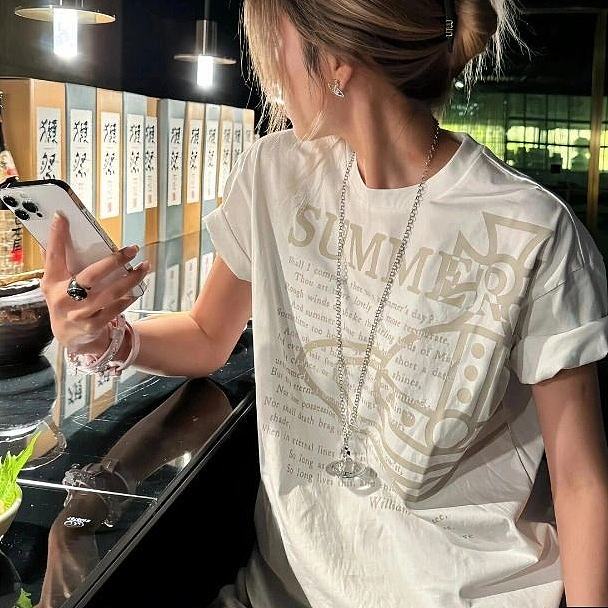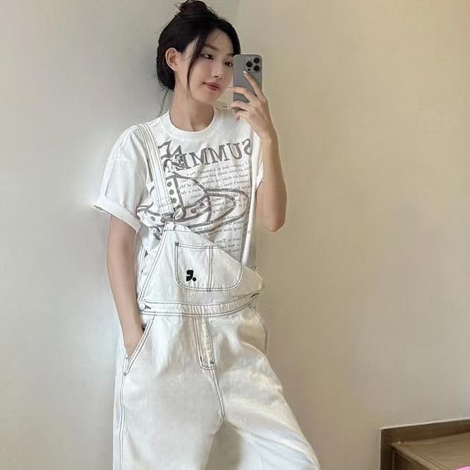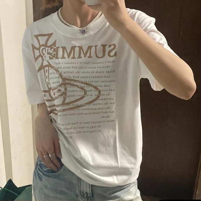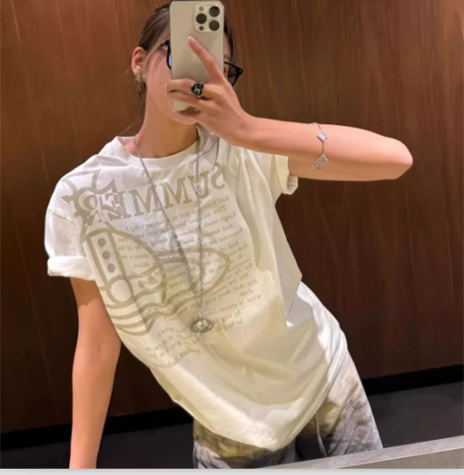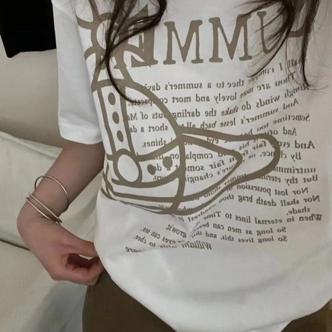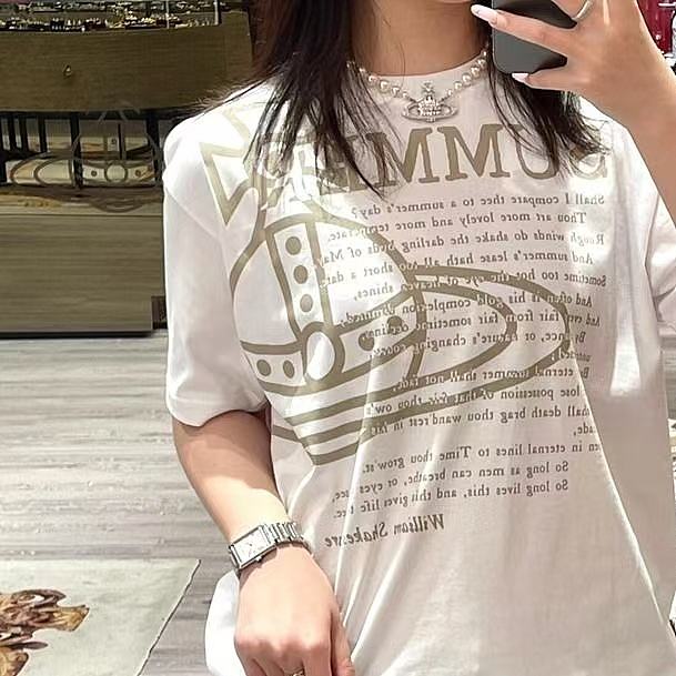 西太后新款土星星球印花圆领短袖T恤 男女同款 白色