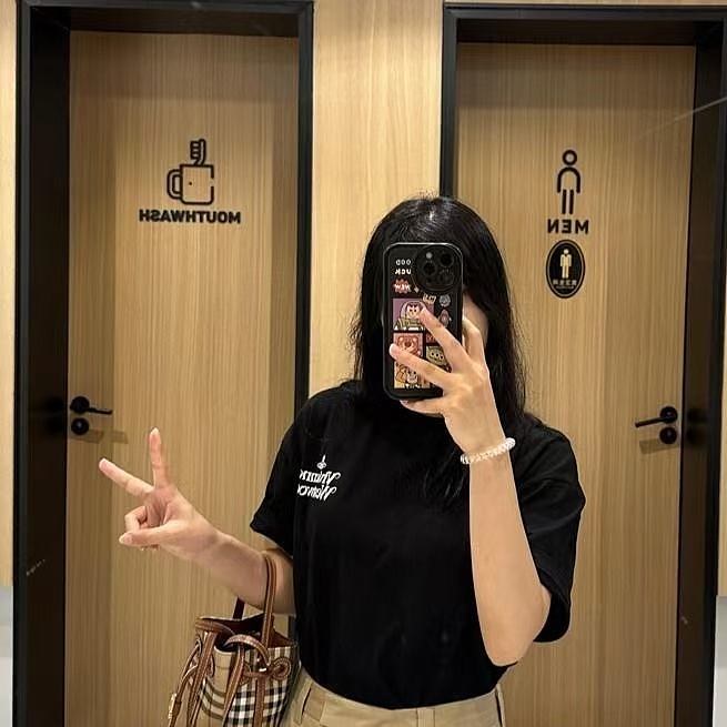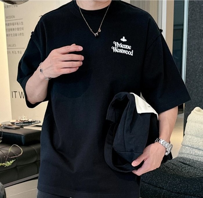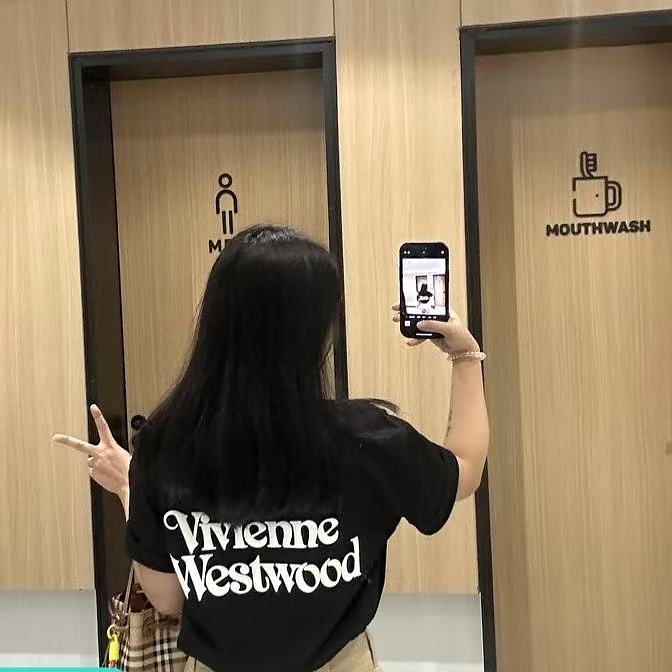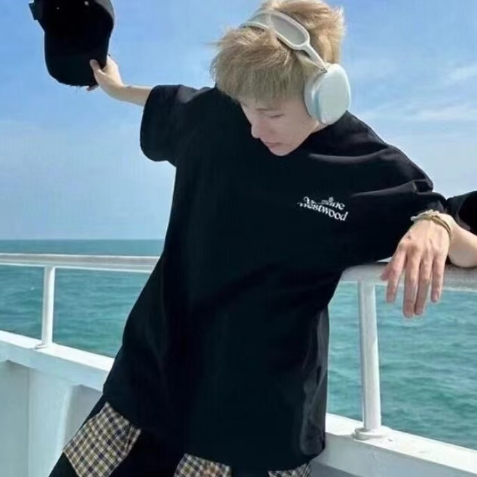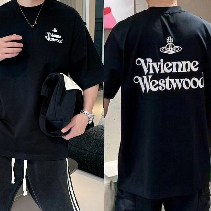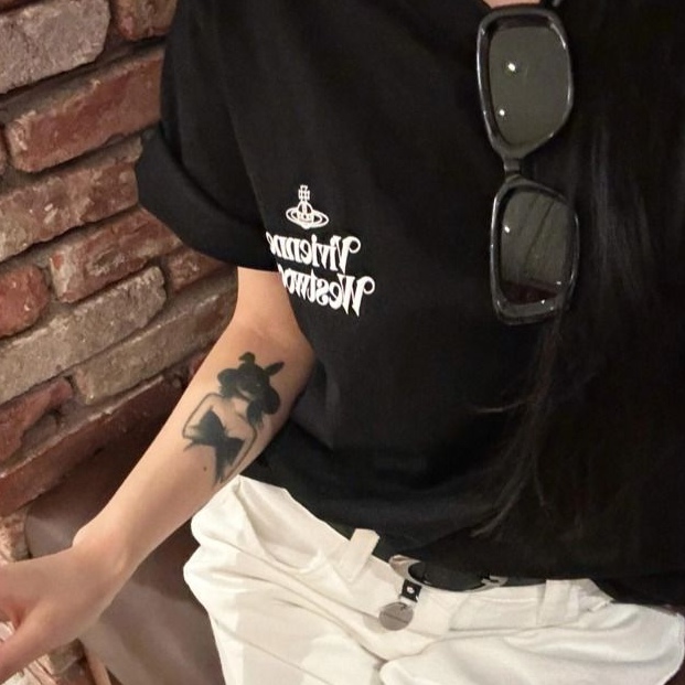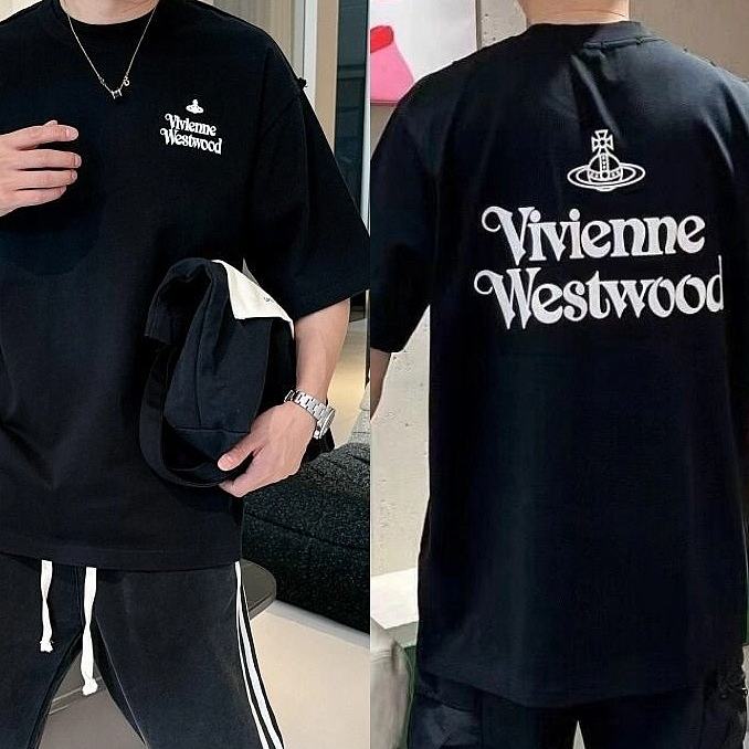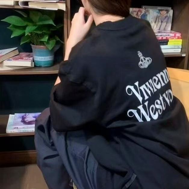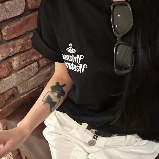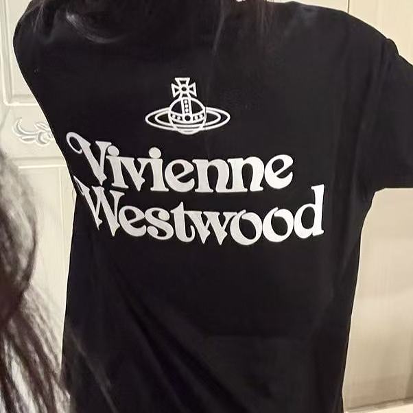 西太后新字母款土星星球印花圆领短袖T恤 男女同款 黑色