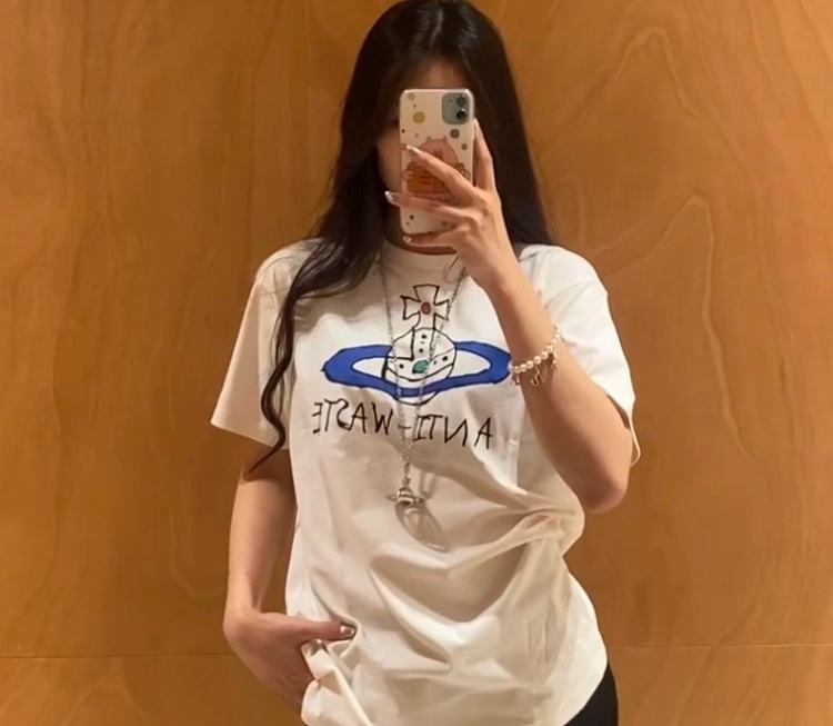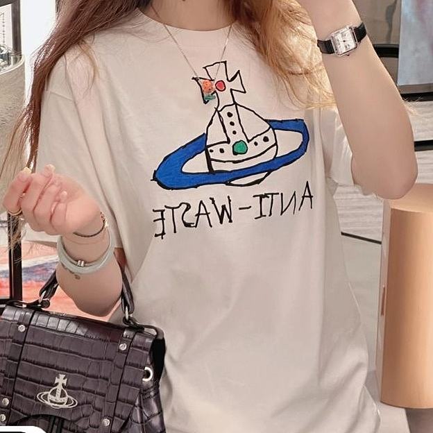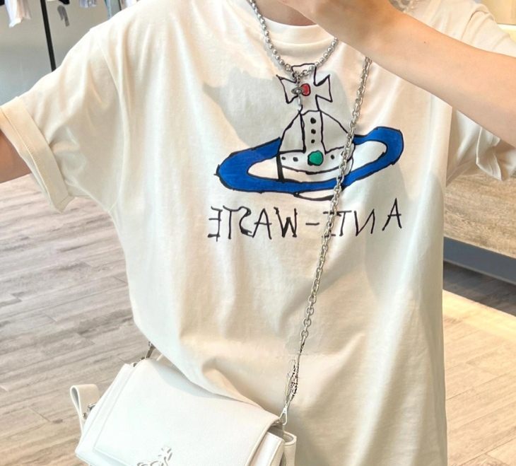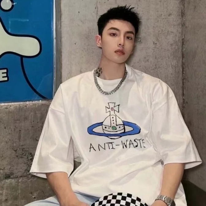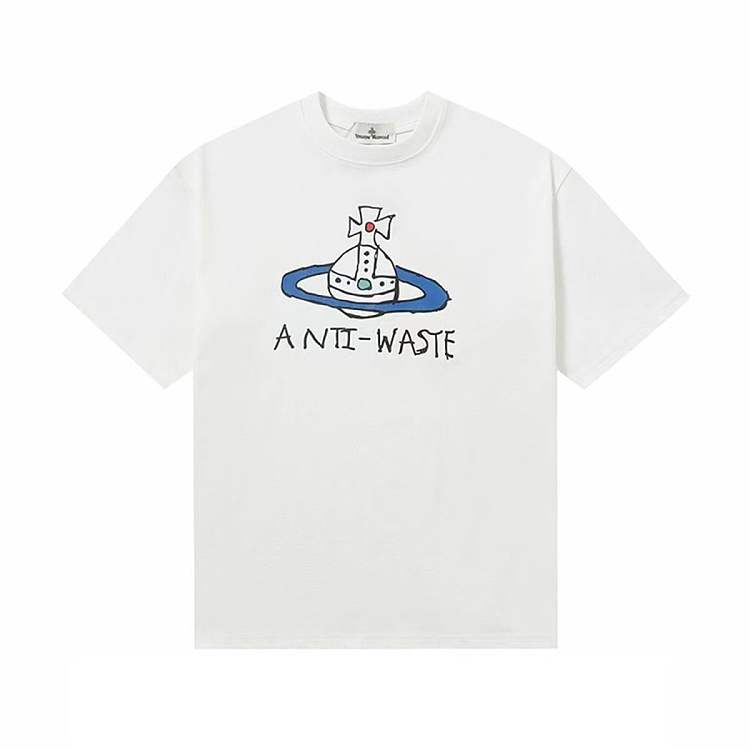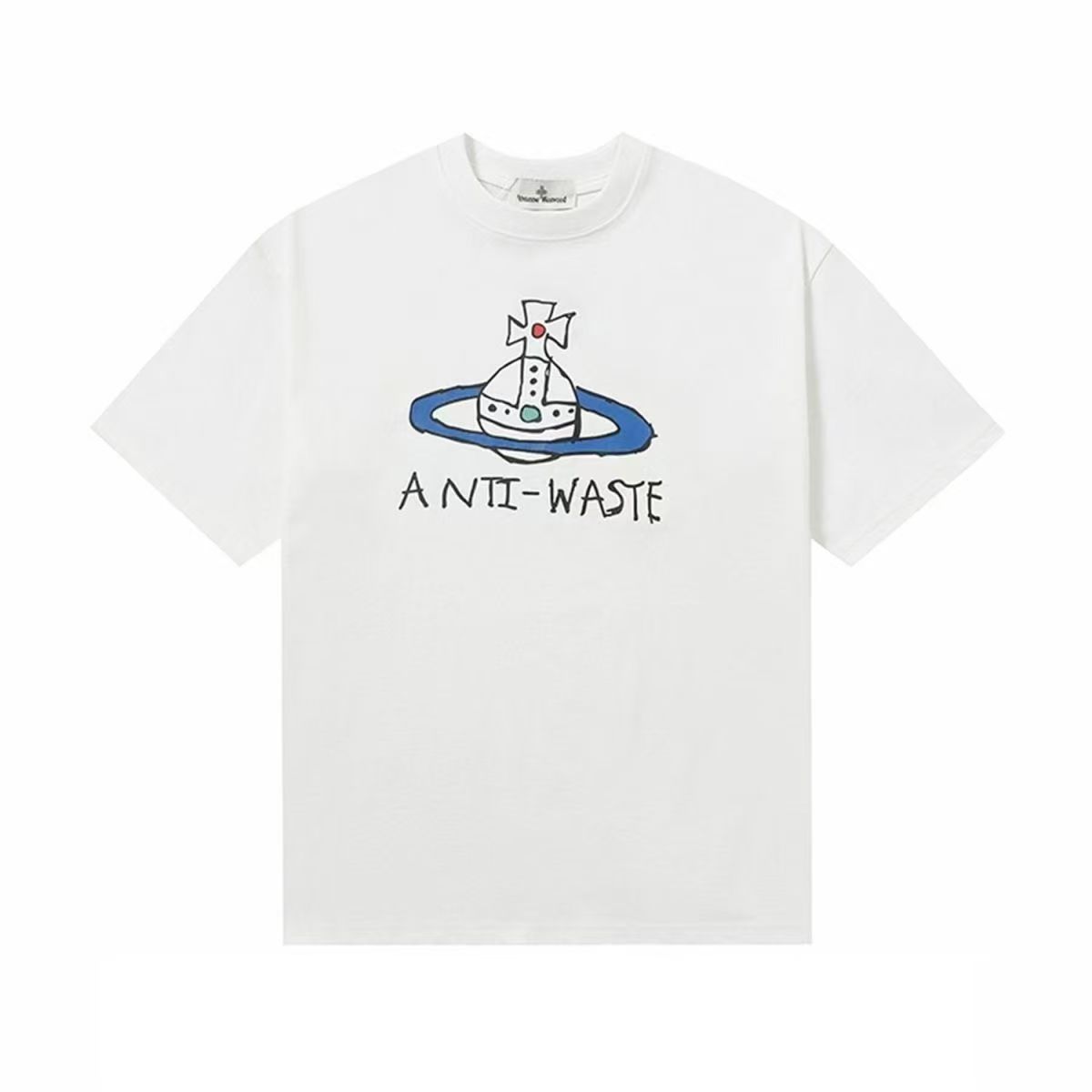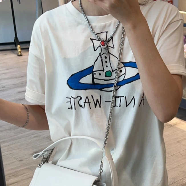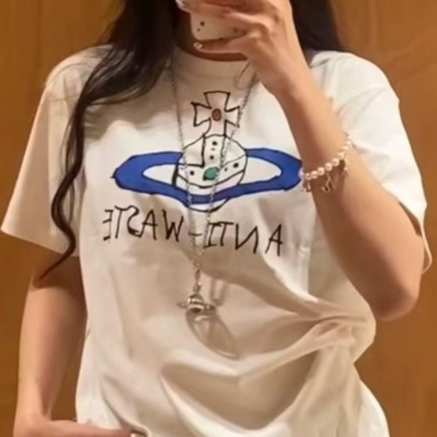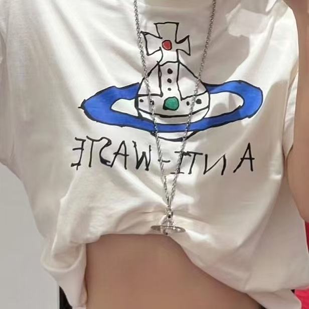 西太后新款土星星球印花圆领短袖T恤 男女同款 白色蓝轨
